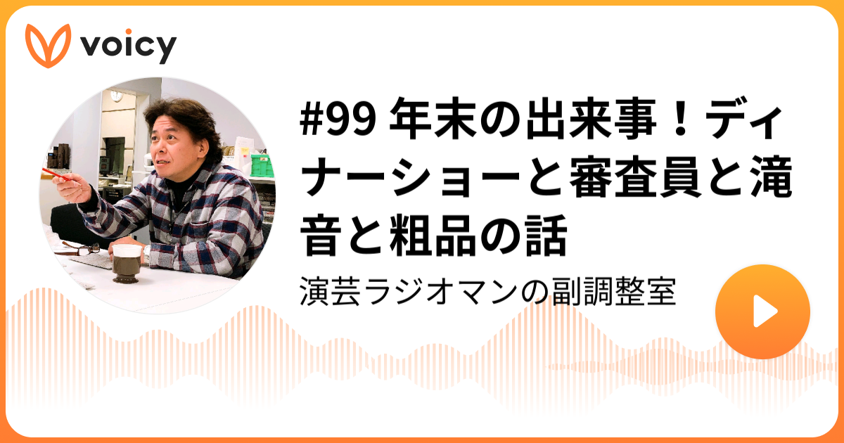 #99 年末の出来事!ディナーショーと審査員と滝音と粗品の話 | 上ノ薗公秀/ABCラジオプロデューサー「演芸ラジオマンの副調整室」/ Voicy - 音声プラットフォーム