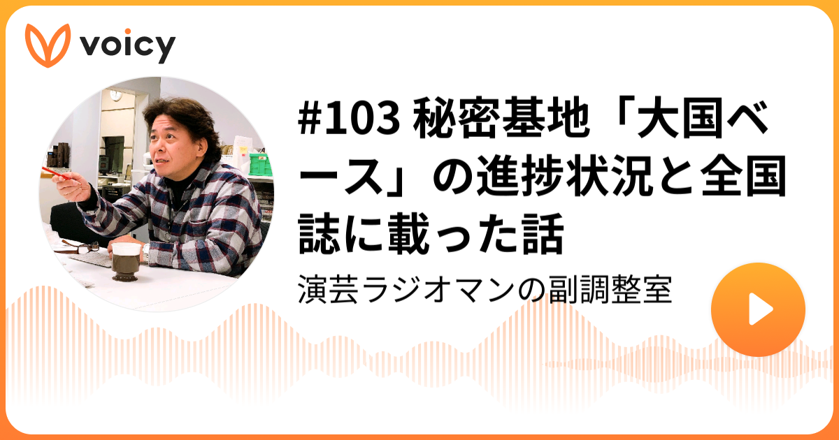 #103 秘密基地「大国ベース」の進捗状況と全国誌に載った話 | 上ノ薗公秀/ABCラジオプロデューサー「演芸ラジオマンの副調整室」/ Voicy - 音声プラットフォーム